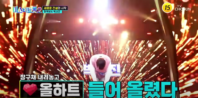 장구 없는 무대가 어색한지 박서진 님은 1절에서 안절부절못한 모습을 보이며 마이크를 꼭 쥐는 모습에 판정단들은 안타까워하는 모습을 보였지만 이내 적응한 듯 능숙한 솜씨로 판정단의 하트를 모두 받아 올하트로 다음 라운드에 진출했습니다.