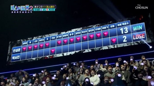 4주 차 투표결과에서 2위를 했었던 박서진이 안성훈과의 데스매치에서 13대 2의 압도적인 점수차로 탈락을 하게 됐는데요.