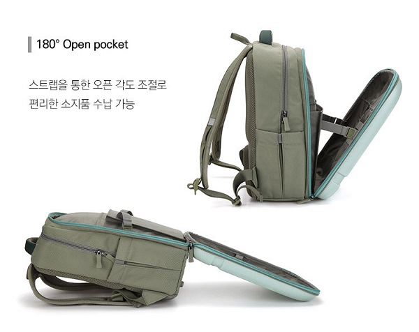 1. 폴리카보네이트 성형몰드를 적용하여 내구성을 극대화한 스타일의 책가방으로 전면 포켓의 넉넉한 수납력과 오거나이저를 업그레이드 적용하여 수납력 강화