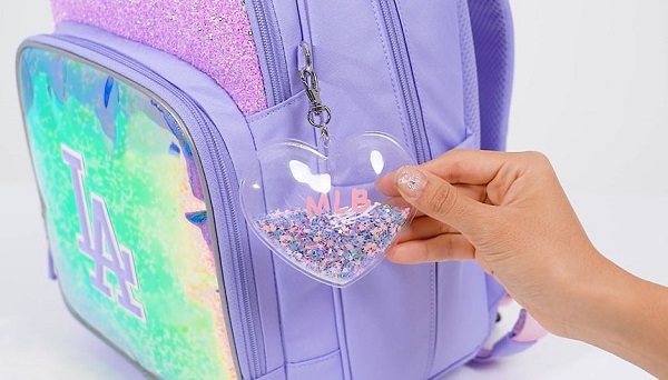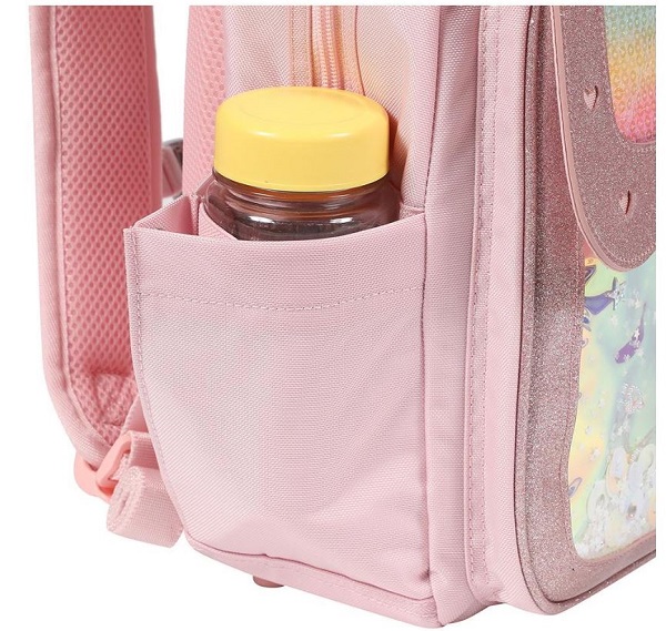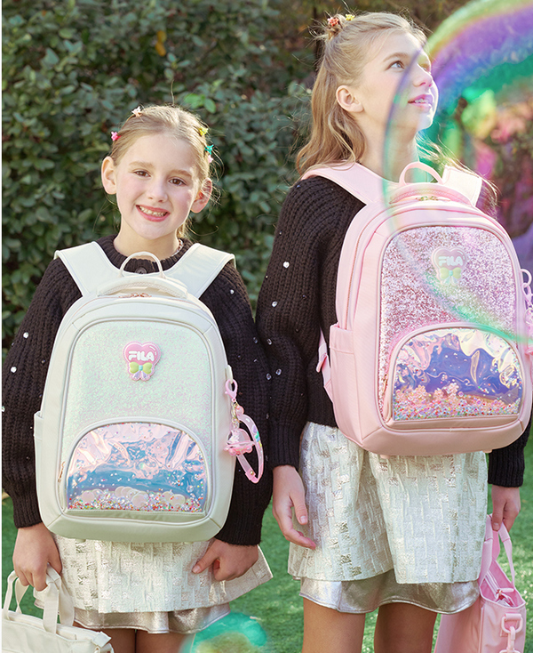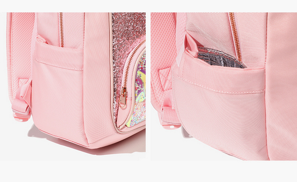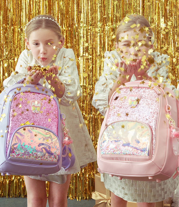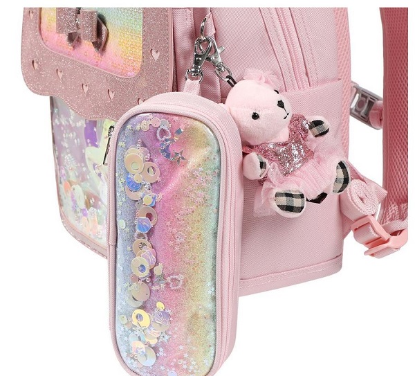 1. 글리터펄 에나멜 소재와 투명한 스팽글이 포인트로 앞판 포켓에 무빙스팽글로 재미난 요소가 가득한 여아 책가방입니다.