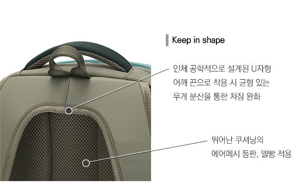 5. U자형 어깨 끈 디자인이 무게감을 적절하게 분산시켜 안정적이 착용감을 제공해 줍니다.